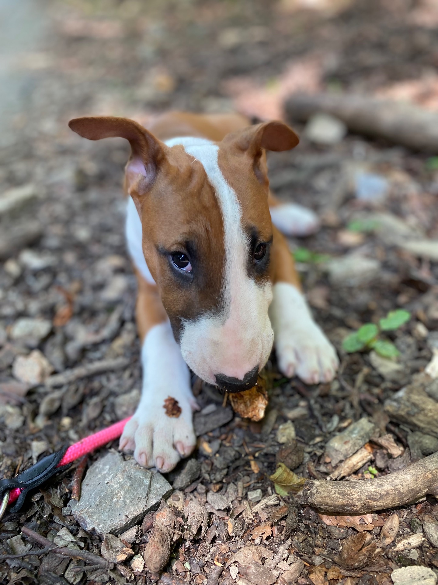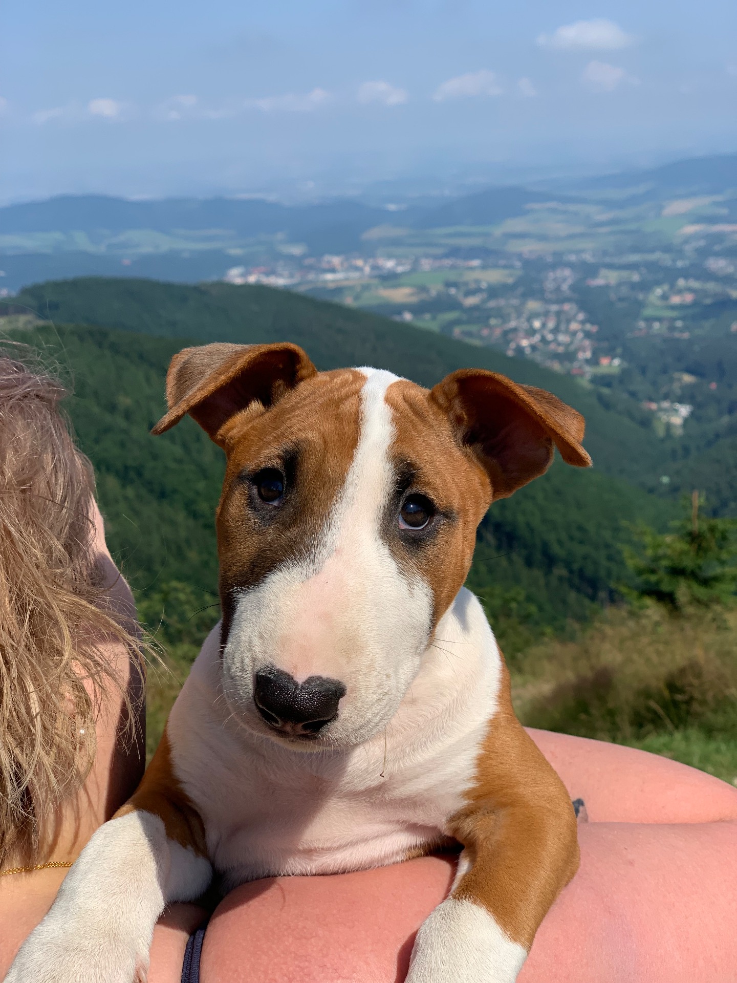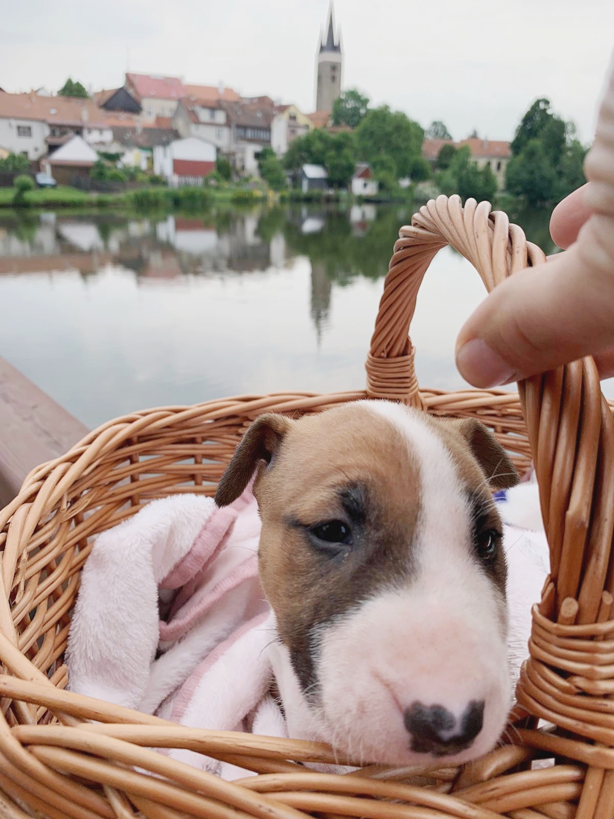 Amy Minie Rostein Bull (ČLP(BT/15143), se narodila 12. května 2021 v našem vlastním chovu ve vrhu "A" mamince v našem chovu Fiona FeeBee Kovrb-Bull (ČLP/BT/14068/21) a tatínkovi Ares z Libyňského vrchu (ČLP/BT/14225/20).